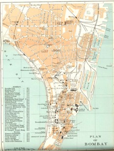 Mit Hilfe der Karte, des Stadtplans von Bombay, habe ich mich heute über die Lage des Freudenmädchen-Quartiers, das wir gestern besucht haben, zu unterrichten gesucht.