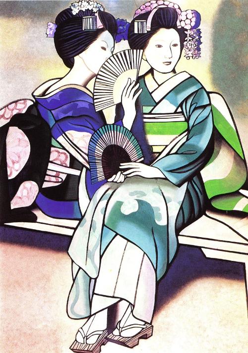 Etliche Japanerinnen sind ausgiebig weiß gepudert, vermutlich um dem Geschmack europäischer Männer ein Zugeständnis zu machen. Koloristische Annäherungsversuche an den hellen Teint der Europäerin.