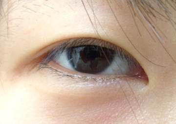 Meine kleine Freundin hat sehr ausgeprägten japanischen Gesichtstypus. Ihr Auge ist von höchst deutlich mongoloidem Charakter. Das obere Augenlid legt sich in ausgiebigem Maße auch über den inneren Augenwinkel und bildet solcherart den „Epikanthus“, die „Mongolenfalte“.