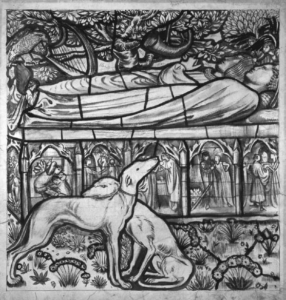 Burne-Jones, Tristram and Iseult stained-glass panel