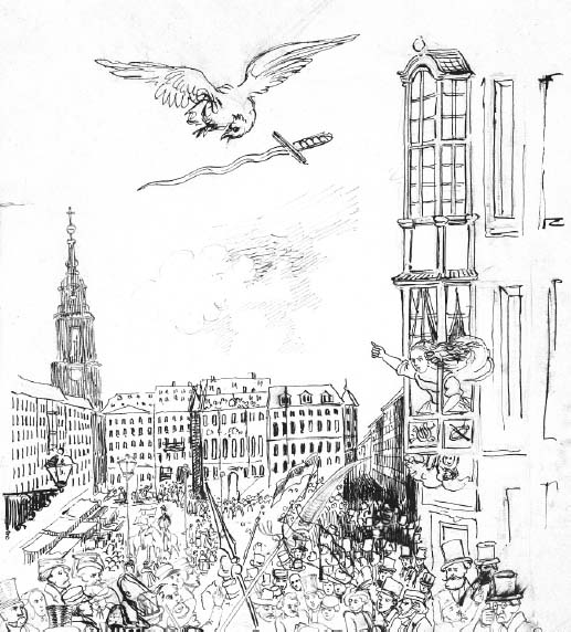 Wagner fleshed out the story in a prose draft titled Siegfried’s Death. He then set the project aside and engaged in the most intense political activity of his life. In May 1849, Dresden revolutionaries rose up in protest of anti-constitutional actions by the Saxon king, and Wagner joined them, generating propaganda, helping to obtain arms, and sending signals from the tower of the Kreuzkirche. He was often at the side of the future anarchist Mikhail Bakunin, who had long-standing ties to German radical circles. According to one witness, Wagner fell into a paroxysm of rage, shouting, “War and always war.” The day after the Dresden opera house was set ablaze, a street fighter supposedly called out, “Herr Kapellmeister, the beautiful divine spark of joy has ignited.” This was an allusion to the “Ode to Joy” in Beethoven’s Ninth, which Wagner had conducted a few weeks earlier: “Freude, schöner Götterfunken.”