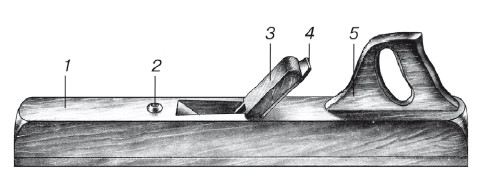 Любой струг имеет нож— стальной резец (раньше назывался железкой), который закрепляется в металлическом станке либо деревянном корпусе (колодке) с помощью винта либо клина. Поясним терминологию (см. рис. 1.40). Сквозное отверстие в средней части станка (колодки) называется леток – для установки ножа и выхода стружки. Леток, сужаясь книзу, переходит в узкую прорезь – «ротик», откуда выглядывает лезвие ножа. «Ротик» делит подошву колодки (станка) на переднюю (носок) и заднюю (пятку). Упоры, фигурные ручки предназначены для удобства в работе.