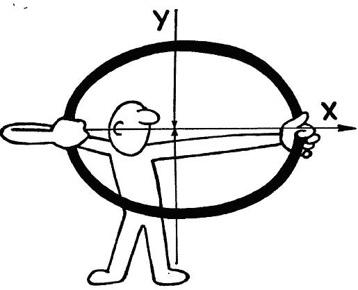 Для наглядного объяснения обменных процессов Гераклит использует реальные вещи: лук и лиру. Поэтому и нам необходимо понять их работу. В начале, для простоты, рассмотрим действие лука, который в чувственно-наглядной форме дает представление о том, что растягивание лука в горизонтальном направлении приводит к его сжатию в вертикальном направлении, и наоборот.