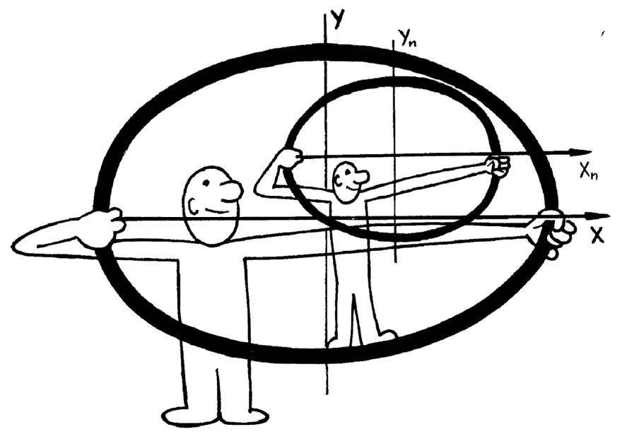 И хотя древние прекрасно видели, что растягивание лука в средней части неизбежно вызывает его вертикальное сжатие, они, тем не менее, не могли понять причину обменов. Для Гераклита же, напротив, гармония лука и лиры – это не что иное, как отношение двух пар противоположностей: «Согласие» и «Раздор», связанных между собой ортогонально, т. е. смещенных друг относительно друга по времени на четверть периода или под прямым углом.