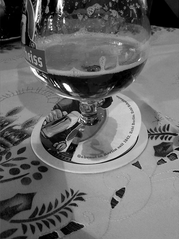 Hier läuft es noch ganz gut, bei Büttelmann in Spandau! Trotz schepper Kugeln und Tischdecken. Das heitere Alltagsleben dort ist beschrieben im Roman Je dickens, destojewski!: »Ernst Wuboldt trat ein und grüßte einen jeglichen Gast im bevölkerten Raumrund. In liebbraunes Licht getunkt, grüßte das Trinkvolk unbeirrt brummelnd dawider. Ein leichter Wind bewegte Gardinen, und diese wiegten der Sonne wuselnde Strahlen durch den zarten Tabakdunst über Tische und Leiber hinweg. Im Lichtbalken, der durch die Tür einfiel, tanzten Stäubchen. Dem Wirt saß ein schicklich lodernder Sonnenfleck im Antlitz; des Büttelmanns Brillenglas lohte forsch wider und beflügelte den Schwung seines Geistes. Den Wuboldt machte es herzfroh, seinen Wirt so frisch und besonnt zu sehen. Er fand gewohnten Platz am Rundtisch. Schon blickte er mit glaubensstarker Muße auf sein von fern herbeieilendes Bier …«
