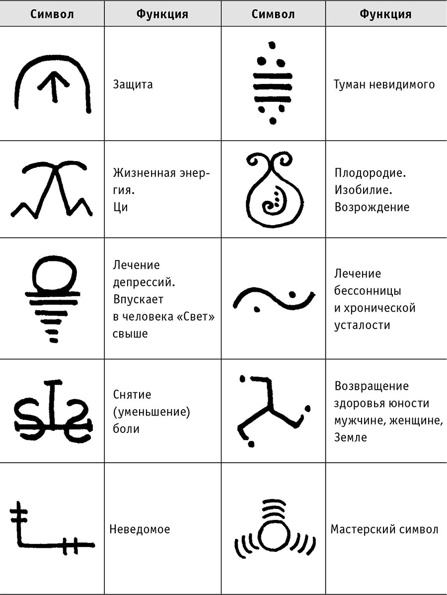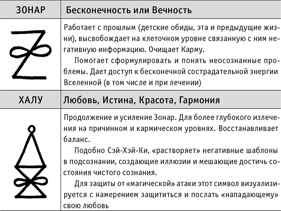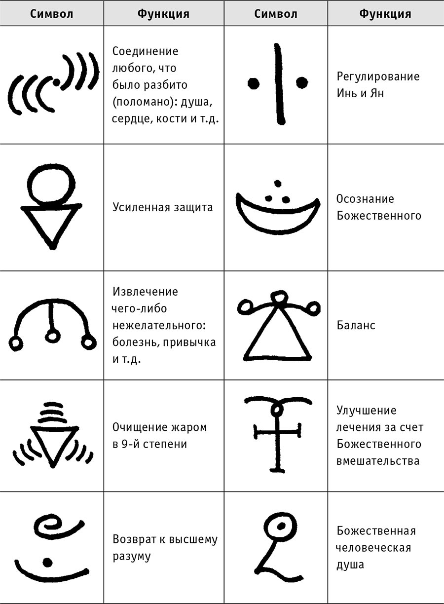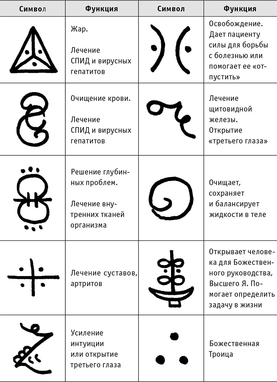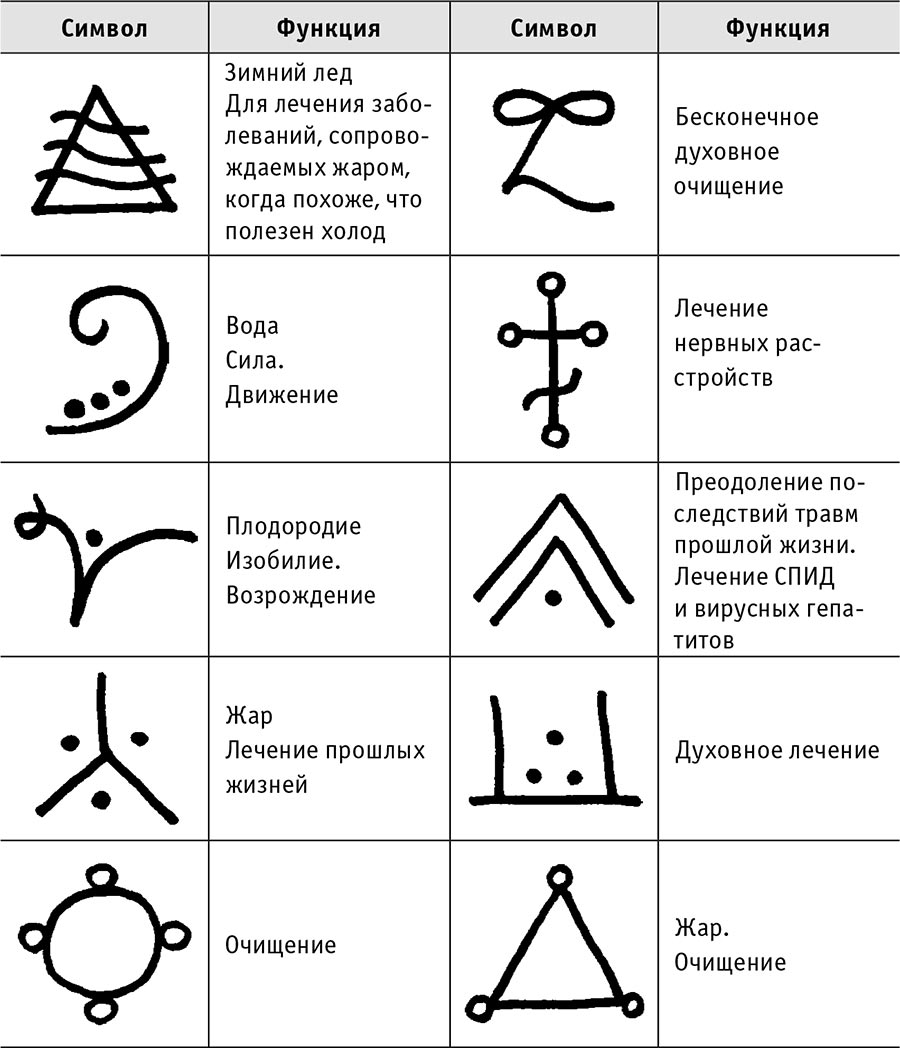 Во время лечения можно проговаривать мантру и использовать (по интуиции) символы Рэй-Ки, два символа, приведенных ниже.