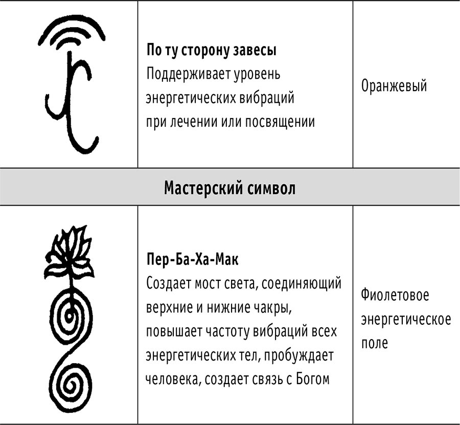 Именно тогда я и «увидела» символы. Честно говоря, я не очень была рада этому: я не оратор, не деловая женщина, не продавец, и мне было не слишком удобно говорить об этом, как о системе. Однако через пару месяцев я решила перестать чувствовать себя несчастной и просто поделиться тем, что видела. Если система Рэй-Ки фиолетового пламени должна развиваться, она будет развиваться. Если нет, то, по крайней мере, я буду знать, что я сделала все возможное, чтобы поделиться этими символами».