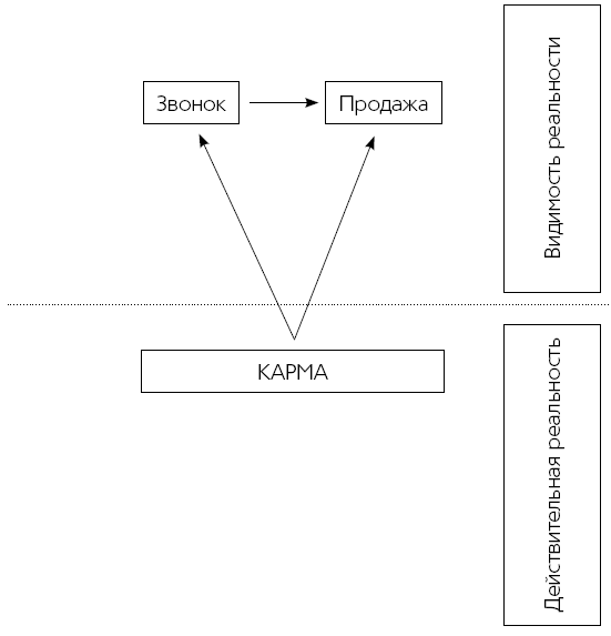 Если звонки повысили продажи, то причина не в звонках; если ключ запустил двигатель, то причина не в ключе. Это лишь «выглядит истинным», нам просто кажется, что так происходит. Но в действительности машину запустил аккумулятор, и именно аккумулятор явился причиной того, что ключ сработал. Вдумайтесь в это. Каждый раз, когда ваш звонок приводит к продаже, истинной причиной этого является карма.