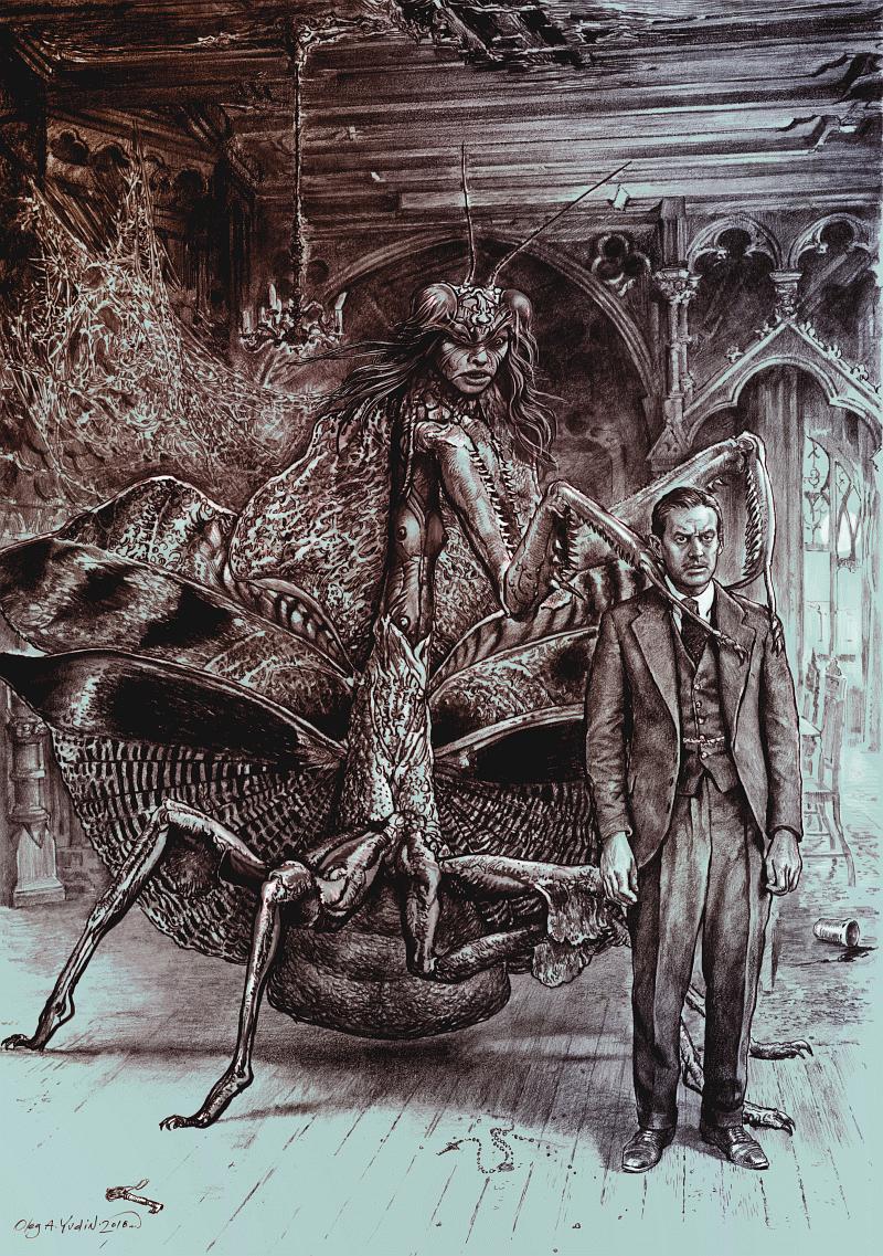 – Теперь ты дома, – сказал ей поклонник, слезая с козел кареты. Сейчас он как две капли воды был похож на ее мужа, но Хелен это не обмануло: выхватив зеркальце из сумочки, которую женщина машинально взяла, убегая, она посмотрела на поклонника и увидела все то же богомолоподобное чудовище. Более того – такие же твари двигались и вокруг, скрываемые фестонами паутины.
