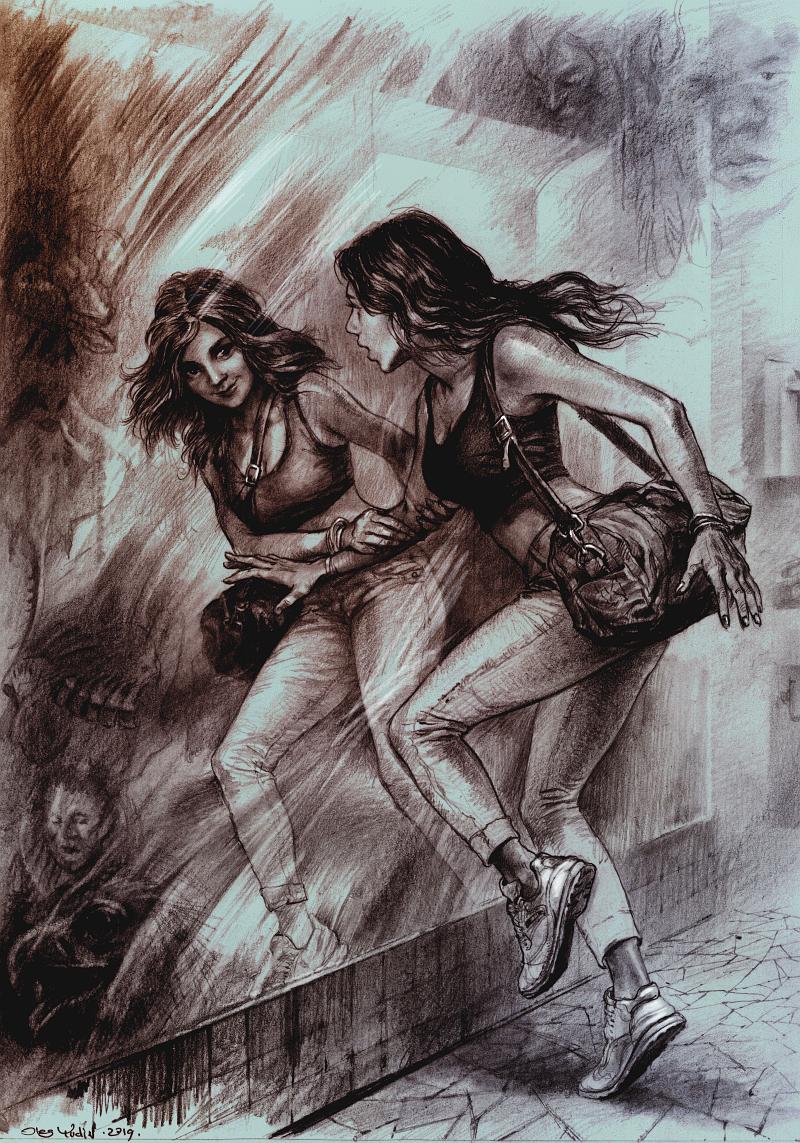 Рука Томми погрузилась в зеркало, как в воду, потом плечо – и, наконец, девушка полностью очутилась в зеркале. Теперь она стояла по ту сторону, словно отражение несуществующей Томми, а затем на мгновение «вынырнула» из зеркала и сказала: