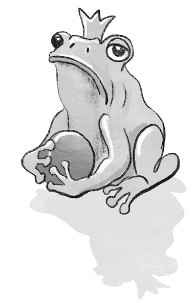 Дорожка, ведущая к за`мку, с обеих сторон огибала фонтан. Но не обычный, а круглый, с покрытым мхом пьедесталом посредине, на котором, обхватив лапами золотой шар, сидела лягушка. Из её широкого рта, очевидно, когда-то давно лилась вода, но сейчас фонтан стоял совершенно сухой.