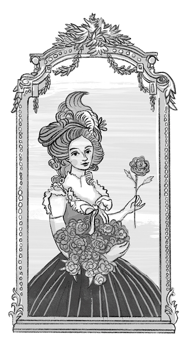 Едва профессор скрылся из виду, как Бекки поднялась на первую ступеньку главной лестницы. Ей хотелось поближе взглянуть на висевшую там картину. Это был портрет женщины в пышном платье, с замысловатой причёской-башней и розовыми щеками. Дама держала на сгибе локтя букет роз, на губах играла загадочная улыбка.