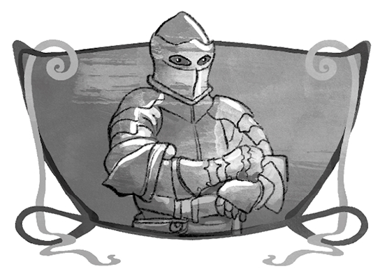 – Ну и что? Он же не живой. – Отец Бекки потрогал шёлковую накидку, надетую поверх кольчуги и нагрудника. – Смотри-ка. На стене есть маленькая табличка с именем. Нашего жестяного друга зовут Фердинанд фон Швертфегер. Какое потешное имя.