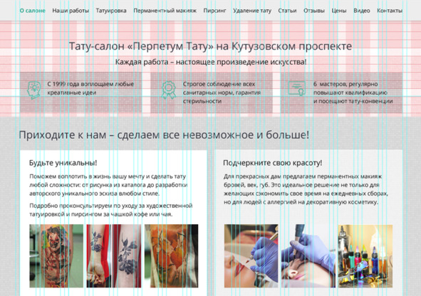 Модульная сетка – это шаблон, по которому строится дизайн сайта с помощью специальной разметки. Сайты, сделанные на основе модульной сетки, удобнее для восприятия с точки зрения юзабилити.