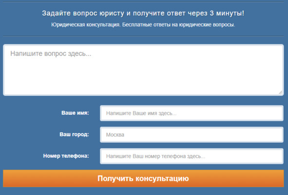 Выполняет одну и ту же функцию, что и «Онлайн-консультант». Единственное отличие в том, что в таких формах пользователь может оставить более развернутый запрос.