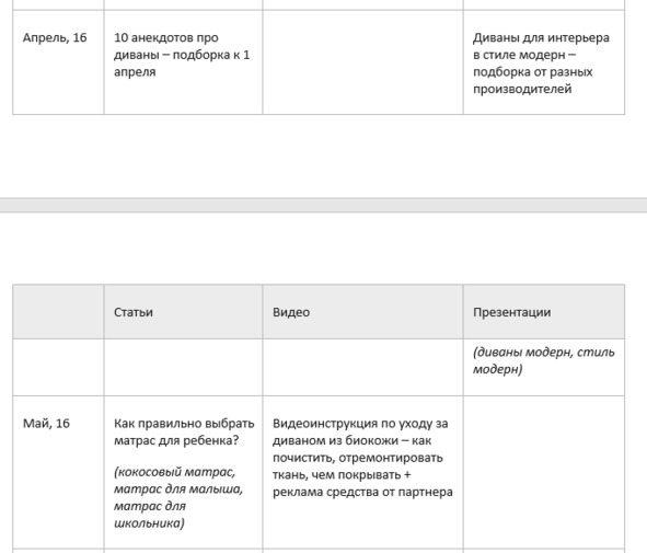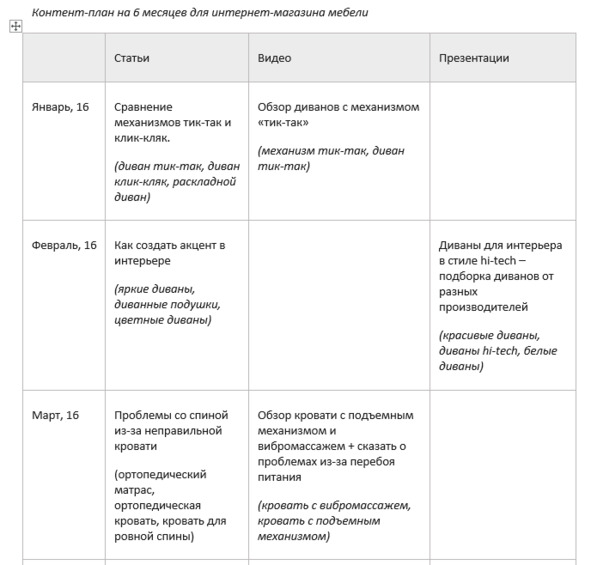 Контент-план на 6 месяцев для интернет-магазина мебели