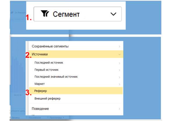 Шаг 1. Заходим в отчет «Посещаемость» и настраиваем сегментацию по рефереру: