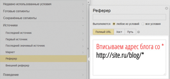 Шаг 2. В качестве реферера указываем URL блога со *: