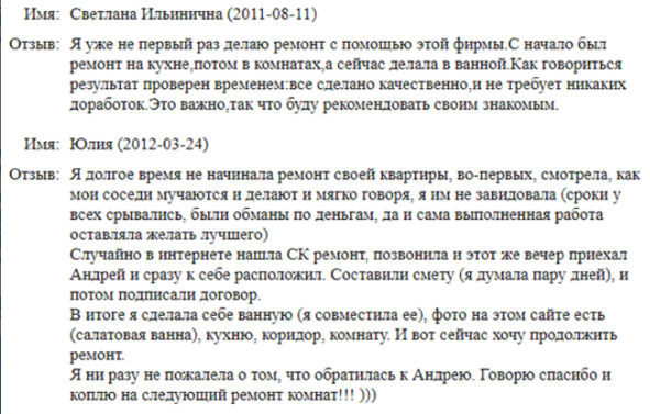 По таким отзывам не видно результат работ: