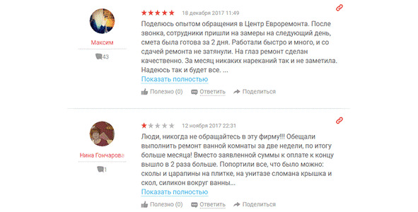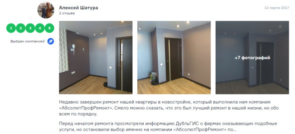 По такому отзыву видно, насколько качественно были выполнены работы:
