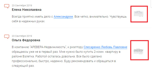 Пример отзывов с фотографиями: