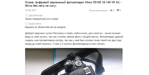 Пример отзыва-истории о фотоаппарате: