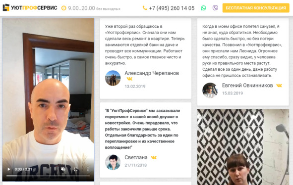 Можно после выполнения работ самим сделать фотографии или попросить клиента сняться в видеоотзыве, как это сделала компания в примере ниже:
