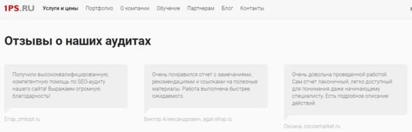 Пример блока с отзывами на странице услуг: