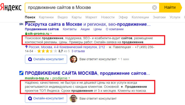 Рис.242. Пример выведения тега Description в поисковой выдаче