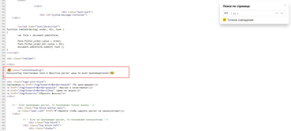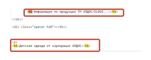 И еще пример, как это выглядит в коде страницы. Запомните, что так делать не рекомендуется. Два H1 без веских на то причин: