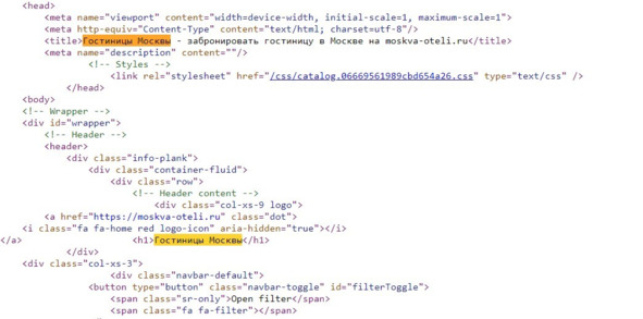 Рис. 253. Оптимизация страницы под запрос «гостиницы Москвы»