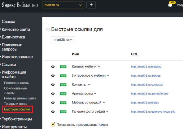 играет важную роль при формировании быстрых ссылок в поисковой выдаче Яндекс.