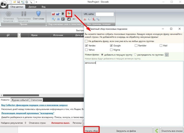 2. KeyCollector – одна из самых известных программ для сбора семантического ядра. Данный софт платный, с большим количеством функций для анализа запросов. Для парсинга поисковых запросов можно воспользоваться «младшим братом» – программой SlovoEB.