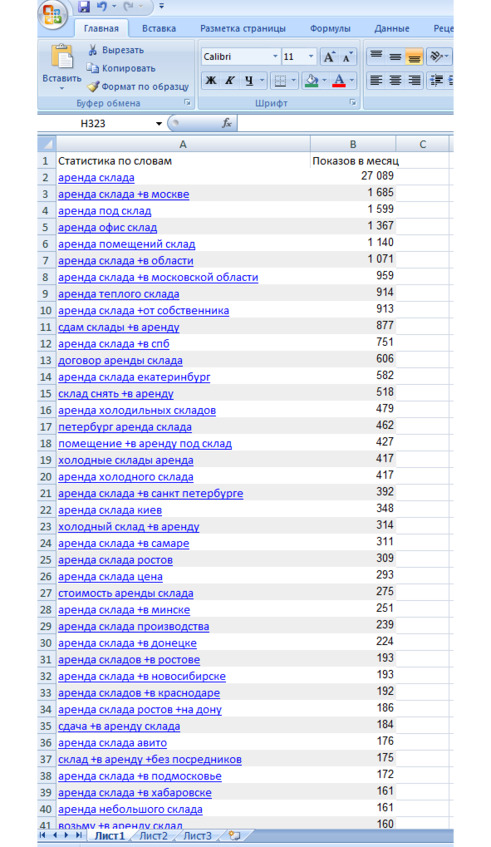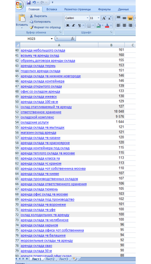 Рассмотрим на практике, как можно расширить сем. ядро уточненными и ассоциативными запросами, для примера возьмем все тот же сайт по предоставлению складских услуг.