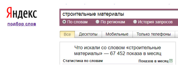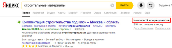 Рис.166. Число страниц в поисковой выдаче по запросу «строительные материалы»