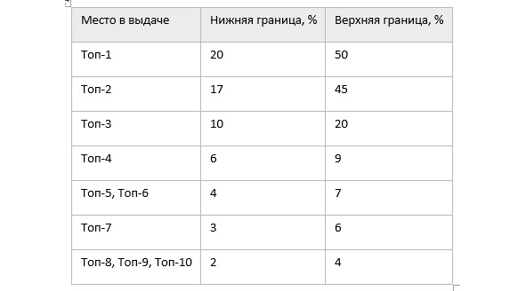 Данные немного отличаются от выше озвученных, и разбег в цифрах у нас больше, зато наша таблица проверена на деле.