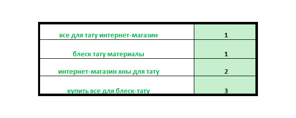 Итого по запросу «все для тату интернет магазин» можно получить от 5 до 14 посетителей в месяц, если сайт попадет на первое место.