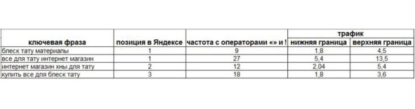 А теперь сравним ожидаемый трафик с полученным по факту по этим запросам: