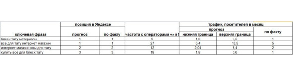 Рис.176. Таблица прогнозируемого и фактического трафика для тату-магазина
