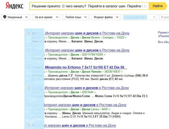 Рис.186. Поиск дублей через расширенный поиск Яндекса