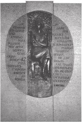 Надписи на памятнике О. Берггольц…и, спаяны сильней,чем кровью рода,родней,чем дети одного отца,сюда зимой сорок второго годасошлись – сопротивляться до конца.Ольга Берггольц («Твой путь»)…И даже тем,кто все хотел бы сгладитьв зеркальной робкой памяти людей,не дам забыть,как падал ленинградецна желтый снег пустынных площадей.Ольга Берггольц («Стихи о себе»)