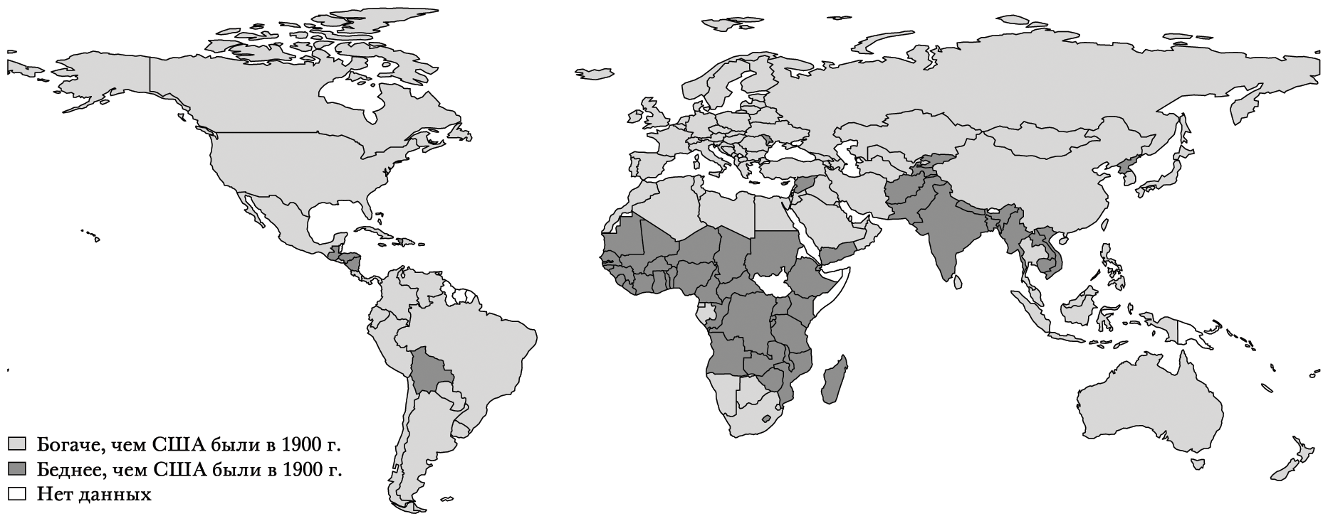 РИС. 1.1. Страны, которые в 2018 г. были богаче (годовой доход на душу населения), чем США в 1900 г.