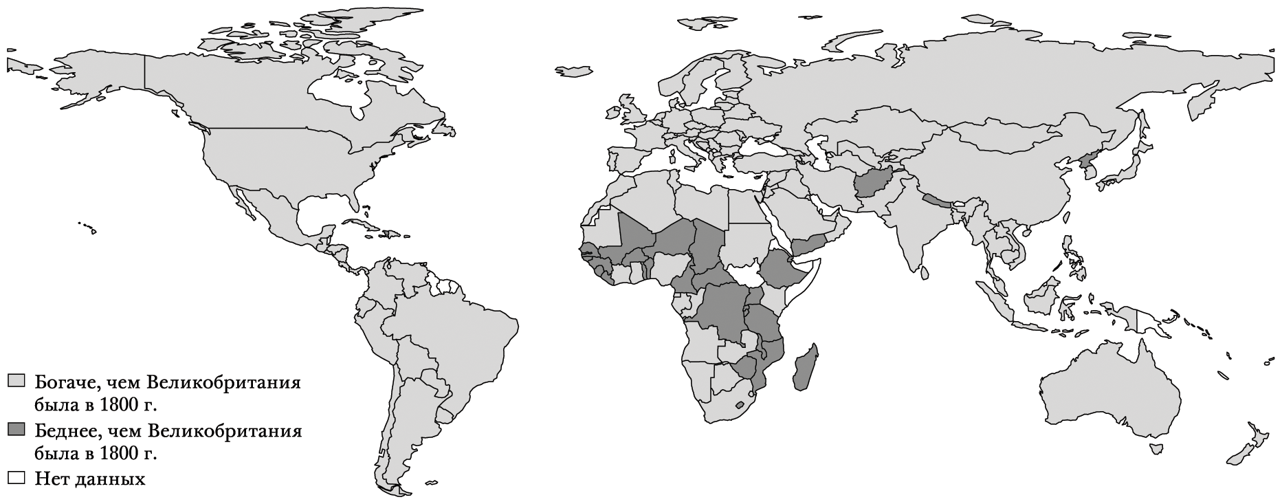 РИС. 1.2. Страны, которые в 2018 г. были богаче (по годовому доходу на душу населения), чем Великобритания в 1800 г.