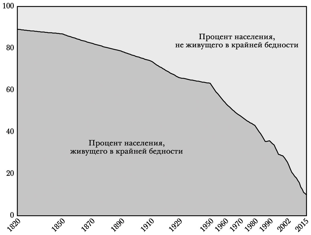 Тем не менее по историческим меркам мир очень богат. Большинство людей живут намного лучше, чем их предки. Больше того, большинству живущих сейчас людей живется лучше, чем почти всем, кто жил когда-либо в прошлом, более чем 200 лет назад (за исключением крошечной элиты, которая жила в роскоши… или в том, что считалось роскошью в то время). По мере того как в XX и XXI веках мир становился богаче, все больше и больше людей вырывалось из бедности. И есть все основания надеяться, что еще при нашей жизни значительная часть оставшейся бедности во всем мире будет ликвидирована.