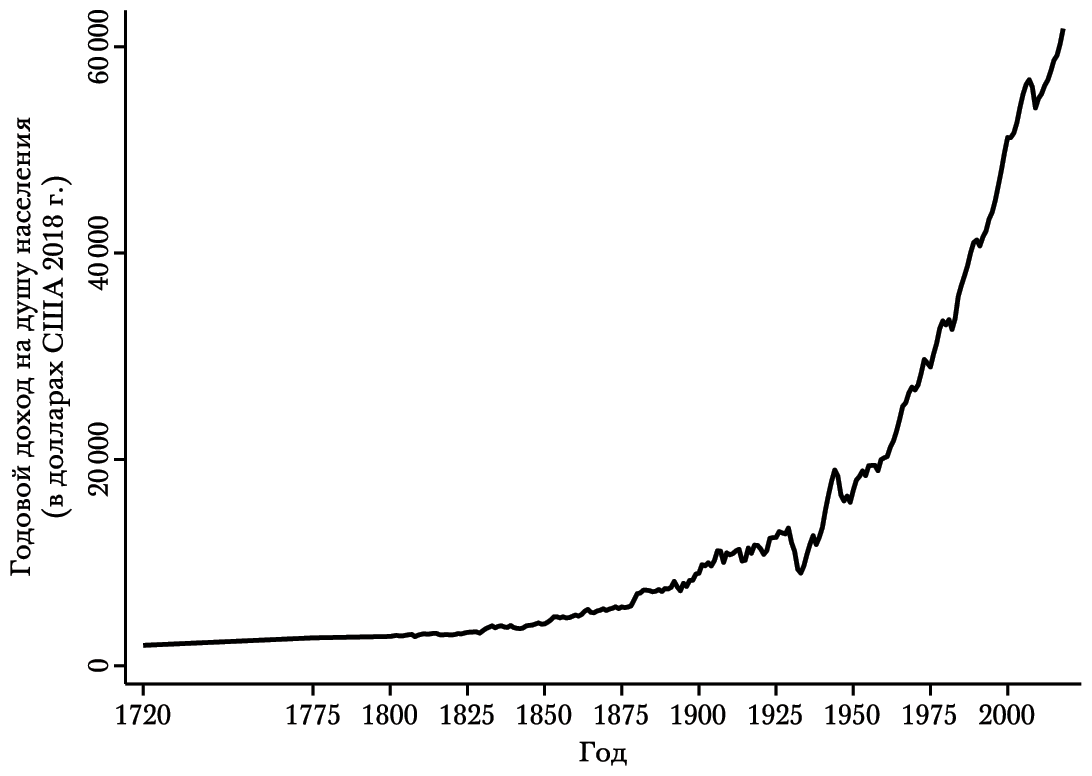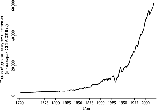 РИС. 1.6. ВВП США на душу населения, 1720–2018 гг. (долл. США 2018 г.)