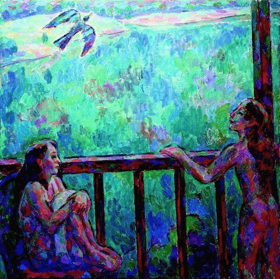 И пока Борис развязывал и расставлял вдоль стен и на стеллажах работы, я смотрела на них новыми удивленными глазами: а ведь и правда – сколько их у него, этих картин, где в разных окнах сидят, стоят, выглядывают или проходят мимо разные люди. Да и сами картины были окнами, откуда глядели в мир множество персонажей, в том числе и сам художник, и мы, его домашние.
