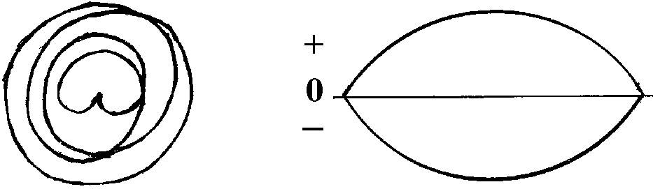 Не может человек расширяться до бесконечности, а у Бога нет остановок. Я продолжал чертить по часовой стрелке, уменьшая круги, и вернулся в ту же точку, из которой вышел. Графически я увидел сложенные кисти рук человека. А сами спирали – это не что иное, как синусоидальные кривые развития (рис.5), но с боковой стороны.