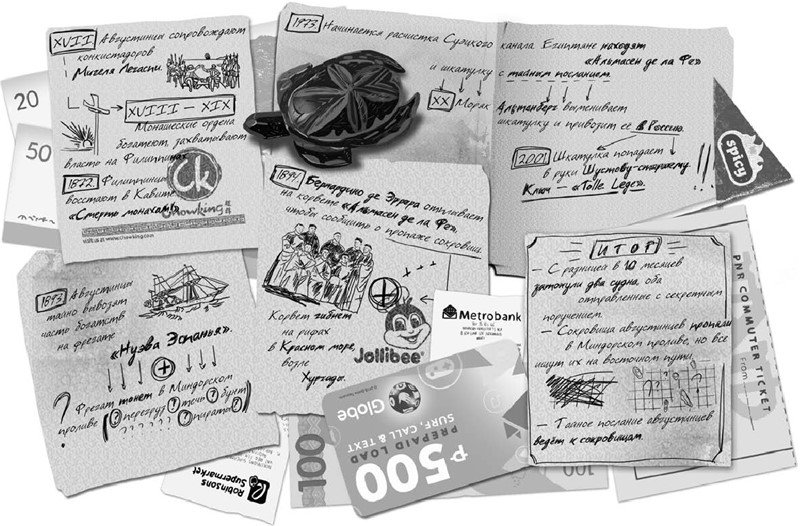В последующие годы августинцы гонялись за призраком масонского заговора на островах, втянулись в усилившееся противостояние с прочими монашеским орденами, а следом американцы объявили войну Испании, разбили их флот и, чтобы не утруждать себя дальнейшей борьбой, втайне от самих филиппинцев выкупили их страну и несколько других испанских колоний за двадцать миллионов долларов. Официально считалось, что августинцы проспали смену власти и потеряли монастыри, а с ними – сокровища. Однако в донесении Бернардино де Эрреры сообщалось иное. Неудивительно, что оно заинтересовало Шустова-старшего. Внучка Альтенберга продешевила, уверенная, что продаёт обычную антикварную шкатулку. В действительности она продала «Изиде» карту сокровищ. Впрочем, карта была не столь однозначной.