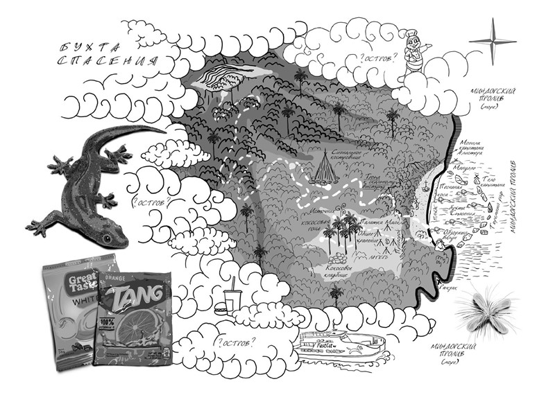 Следующей новостью стала очередная находка Риты. Дочь Самоедова присвоила маску с трубкой из выловленного рюкзака и плавала за пределы рифа. Именно там она разглядела прибитый течением деревянный ящик. К сожалению, он лежал слишком глубоко – обсыпанный коралловыми обломками, намертво застрял в десятке метров под поверхностью воды. Если кто-то и мог донырнуть до ящика, то поднять его не было никакой надежды. Арендованного Максимом буксира с кабестаном поблизости не оказалось. Никто не сомневался, что ящик выпал с парома, однако даже члены экипажа, среди них – единственный выживший трюмный матрос, Макисиг, не знали, что скрыто под крышкой. Ни надписей, ни этикеток. Только опознавательный номер, ничего не говоривший без соответствующей накладной. Содержимое ящика превратилось в идеального барашка Экзюпери, и каждый воображал то, о чём больше всего тосковал последнюю неделю. Воображение ограничивалось лишь размерами ящика. Ночью Клэр, Лоран и Дима делились предположениями, и Лоран неизменно веселил остальных нелепостью выбора. Его наиболее адекватным барашком, пожалуй, стал бритвенный станок.