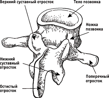 По сути, позвонки надеты на стержень, которым является спинной мозг. Вне зависимости от принадлежности к какому-либо определенному отделу позвоночника все позвонки имеют общее строение и состоят из тела, дуги и отростков (рис. 2).